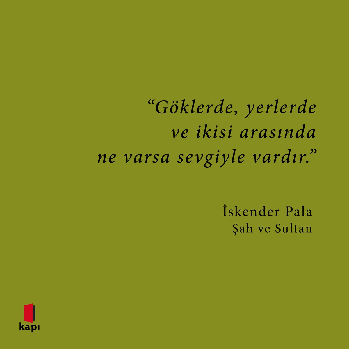 Kapi Yayinlari On Twitter Goklerde Yerlerde Ve Ikisi Arasinda Ne Varsa Sevgiyle Vardir Iskender Pala